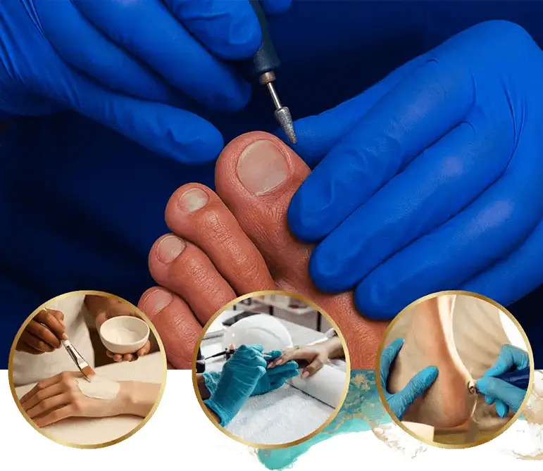 Our foot care services focus on safe and sanitary waterless pedicures. These services are rejuvenating and address dryness, cracking, corns, and other concerns such as calluses, and various toenail dysfunctions such as thickened or overly curved toenails